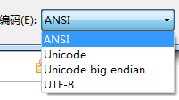 其中ANSI是默认的编码方式,对于英文文件是ASCII编码,对于简体中文文件是GB2312编码(只针对Windows简体中文版,如果是繁体中文版会采用Big5码);