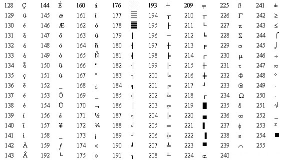 EASCII(Extended ASCII,延伸美国标准信息交换码)由此应运而生,EASCII码比ASCII码扩充出来的符号包括表格符号、计算符号、希腊字母和特殊的拉丁符号: