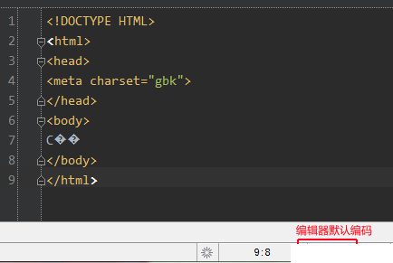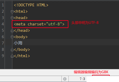 我们现在将文件重新编辑,即编辑时采用GBK,但头部申明为UTF-8: